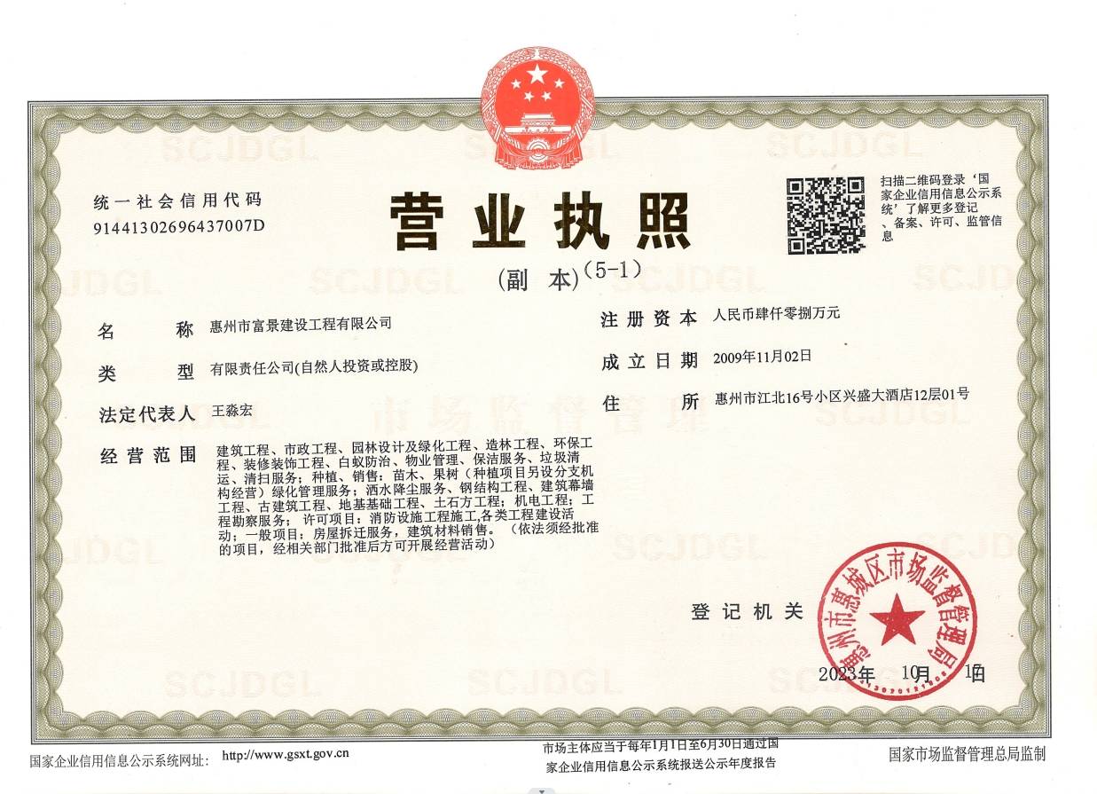 惠州市富景徏讑ַE有限公司是一家有独立法h资格的企业,公司成立?009q?1月,注册资本?008万元Q公司注册地位于惠州市江?6号小区力天中?2楹{公司具有徏{工E施工L包贰U,市政公用工程施工L包叁U,建筑装修装饰工程专业承包贰Q徏{幕墙工E专业承包贰U,古徏{专业承包叁U,钢结构工E专业承包叁U,地基基础工程专业承包叁{资质?a href="About.aspx?ClassID=245">[更多]